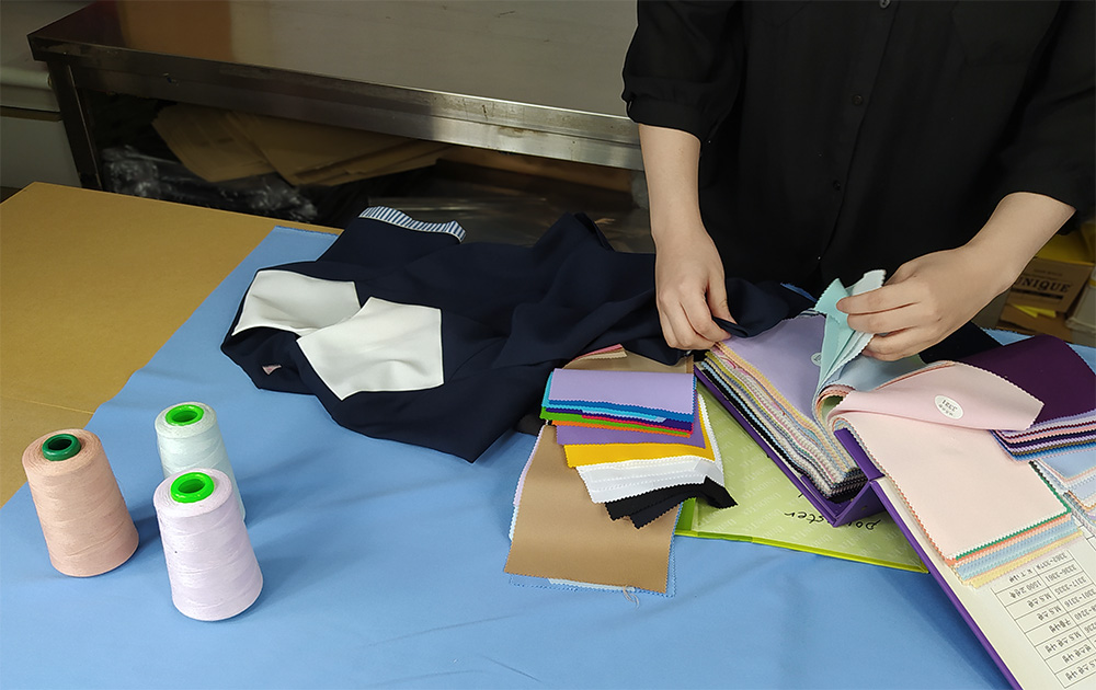 상품의 원단을 하나하나 체크한 후 탄성과 유지력이 뛰어난 기능성 원단을 채택합니다.